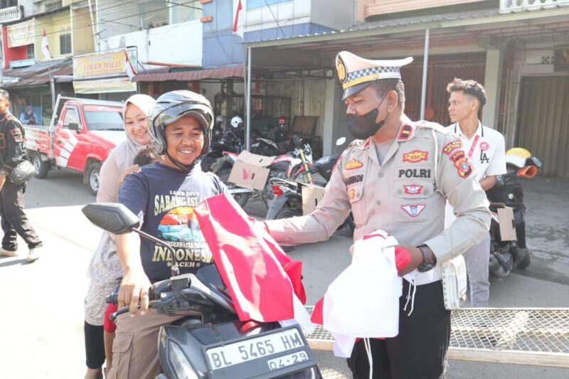 Kapolres Aceh Tenggara Pimpin Langsung Pembagian Bendera Merah Putih, Pengendara Roda Dua dan Empat Ikut Menyemarakkan HUT RI ke-80