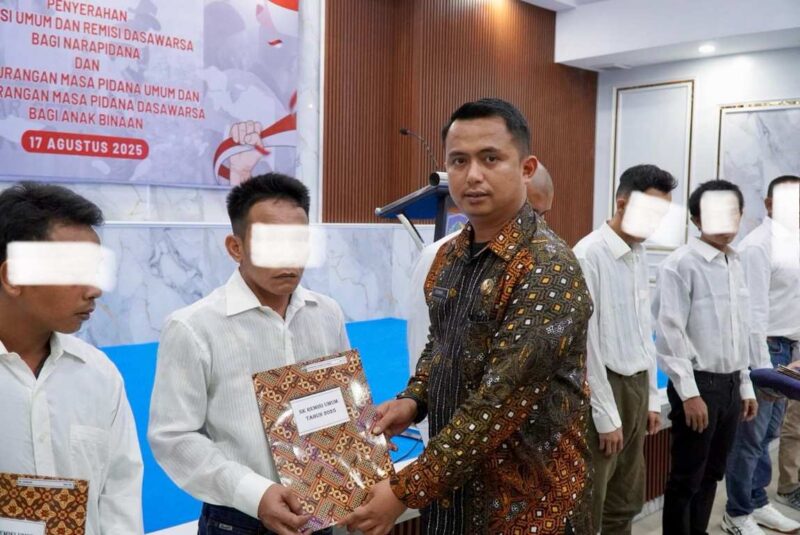 Medan – 17 Agustus 2025, usai melaksanakan Upacara HUT RI Ke-80 Kemerdekaan Republik Indonesia, Rutan Kelas I Medan melaksanakan penyerahan Remisi Umum dan Remisi Dasawarsa Tahun 2025 kepada Warga Binaan. Acara penyerahan dipimpin langsung oleh Kepala Rutan Kelas I Medan, Andi Surya didampingi Kepala Seksi Pelayanan Tahanan, Ronny Steven, Kasubsi Administrasi & Perawatan, Wisnu Jatmiko, beserta Staff.