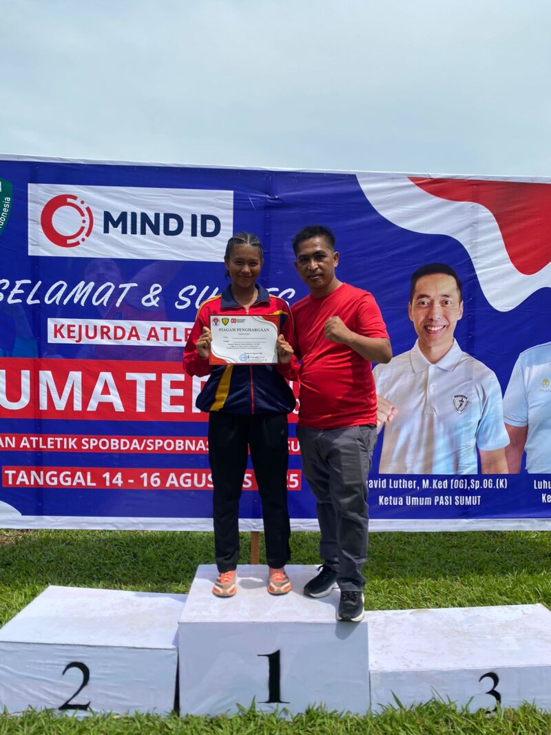 Medan – Rohmauli banurea Atlet PASI Kabupaten Pakpak Bharat Kembali menorehkan prestasi gemilang di ajang Kejuaraan Daerah Atletik Sumatera Utara di lapangan SPOPDA Sumut di Medan 14-16 Agustus 2025. Berita baik ini disampaikan oleh Hotman Hasugian,S.Pd,M.Psi Selaku Pelatih.