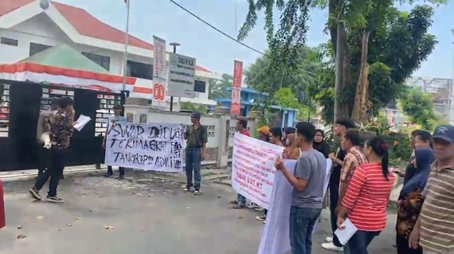 “Ini bukan sekadar pelanggaran administrasi, tapi bentuk nyata korupsi. Kami minta kasus ini diusut tuntas dan pelakunya diproses hukum,” teriak massa aksi.