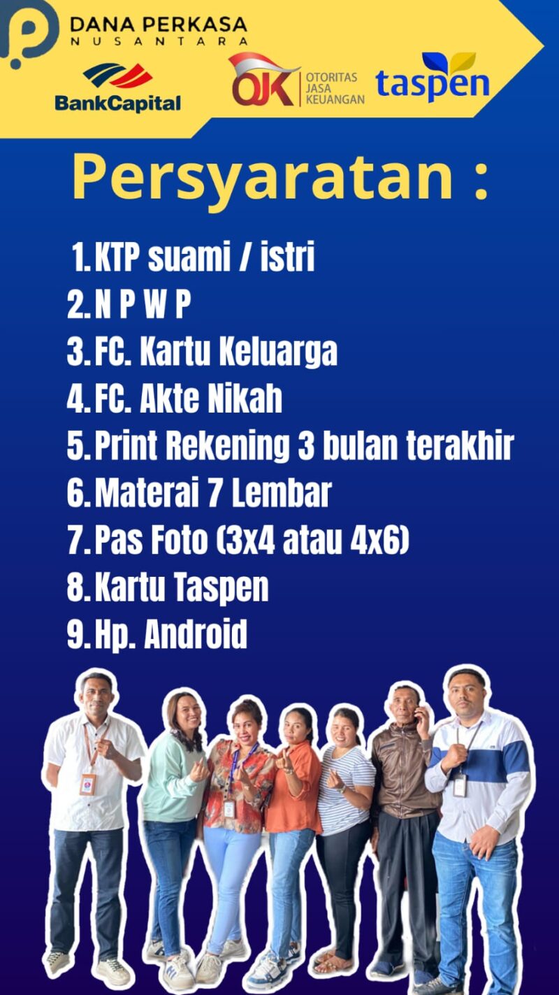 Kabar gembira untuk Anda para ASN, pensiunan, dan penerima manfaat Taspen! PT Dana Perkasa Nusantara bekerja sama dengan Bank Capital dan Taspen, serta diawasi langsung oleh Otoritas Jasa Keuangan (OJK), kini menawarkan program pinjaman dana cepat dengan proses mudah, syarat ringan, dan pencairan cepat.