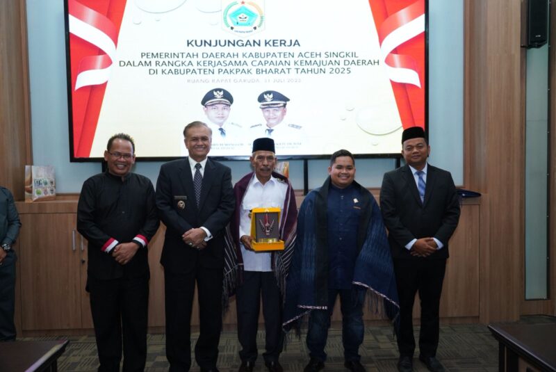 Pakpak Bharat – Wakil Bupati Pakpak Bharat, H Mutsyuhito Solin, Dr, M.Pd menerima kunjungan Wakil Bupati Aceh Singkil, H Hamzah Sulaiman, SH bersama rombongan yang datang mengunjungi Kabupaten Pakpak Bharat kamis sore (31/07/2025). Pertemuan kedua Wakil Kepala Daerah bertetangga ini banyak membahas Kerja sama Capaian kemajuan di kedua Daerah.