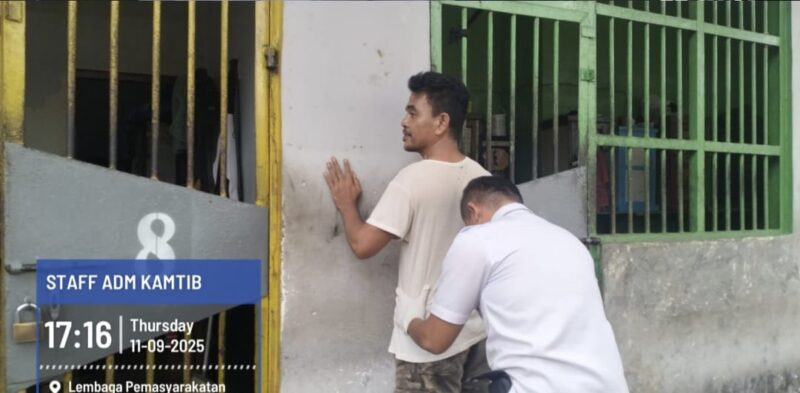 Sibolga – Lembaga Pemasyarakatan Kelas IIA Sibolga melaksanakan razia kamar hunian warga binaan pada Kamis (11/09/2025). Kegiatan ini dipimpin langsung oleh Kepala Kesatuan Pengamanan (Ka. KPLP) Ibnu Taqwim bersama jajaran pengamanan.