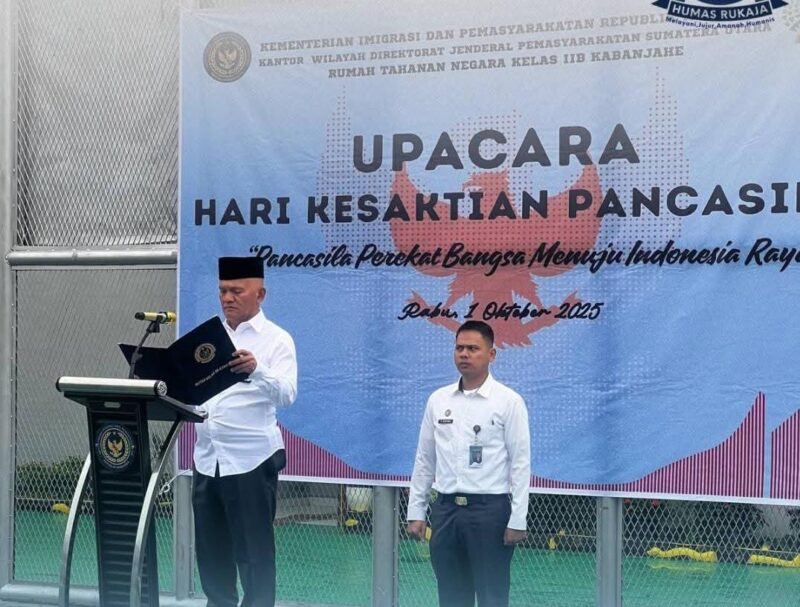 KABANJAHE KARO,Indonesia24News.net|Dalam rangka memperingati Hari Kesaktian Pancasila yang jatuh pada tanggal 1 Oktober 2025, Rumah Tahanan Negara (Rutan) Kabanjahe menggelar upacara bersama yang diikuti oleh seluruh pegawai dan warga binaan. Kegiatan ini berlangsung khidmat di lapangan Rutan Kabanjahe dengan mengusung tema “Pancasila Perekat Bangsa Menuju Indonesia Raya”