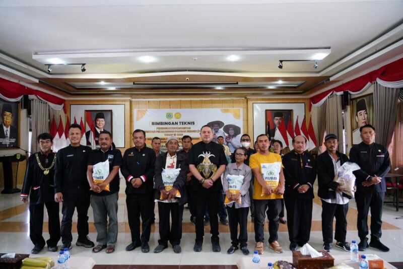 Bupati Pakpak Bharat, Franc Bernhard Tumanggor, menyerahkan bibit jagung, padi gogo, dan aneka sayuran kepada puluhan kelompok tani dan kelompok wanita tani di Kabupaten Pakpak Bharat. Penyerahan bantuan ini dilakukan di aula Bale Sada Arih, bersamaan dengan bimbingan teknis peningkatan kapasitas kegiatan Pekarangan Pangan Bergizi (P2B).