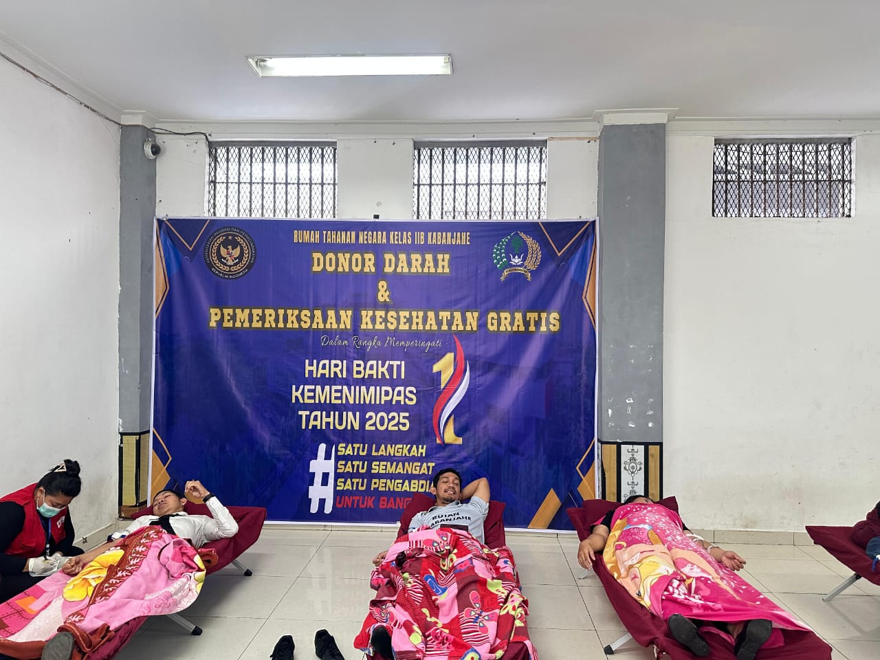Kabanjahe – Dalam rangka menyemarakkan Hari Ulang Tahun Kementerian Imigrasi dan Pemasyarakatan Ke-1, Unit Pelaksana Teknis Pemasyarakatan melaksanakan kegiatan donor darah dan pemeriksaan kesehatan gratis yang dilaksanakan di Rutan Kabanjahe, Sabtu (15/11).