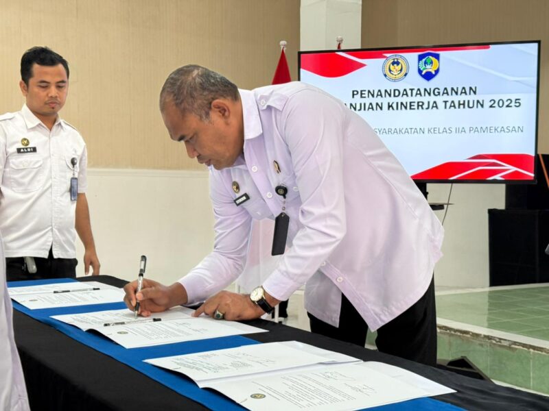 Pamekasan – Lapas Pamekasan, Kantor Wilayah Ditjen PAS Jawa Timur pada hari Kamis (20/11) melaksanakan kegiatan Penandatanganan Perjanjian Kinerja Tahun Anggaran 2025 sebagai wujud komitmen bersama dalam meningkatkan kualitas kinerja organisasi yang terukur, transparan, dan akuntabel. Kegiatan ini dipimpin oleh Syukron Hamdani, Kepala Lapas Pamekasan beserta seluruh pejabat struktural dan jajaran pegawai, bertempat di aula Lapas Pamekasan.