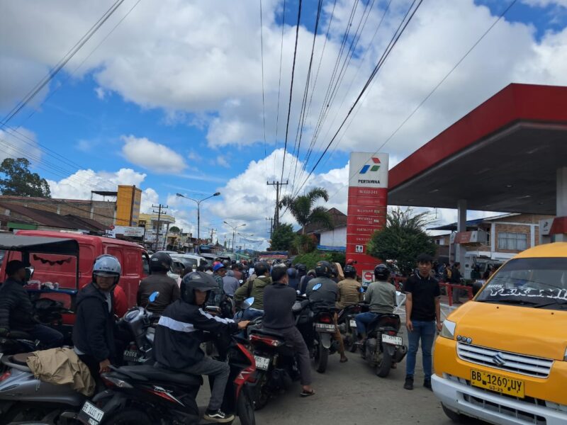 Pemandangan miris terlihat hampir terjadi setiap hari saat pemilik kenderaan bermotor antri panjang lebih kurang 3 kilometer di SPBU Batang Beruh di Sidikalang.