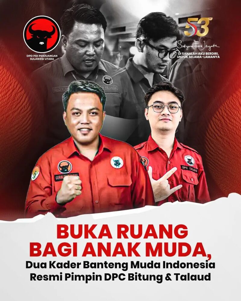 PDI Perjuangan Sulawesi Utara resmi menetapkan dua kader Banteng Muda Indonesia (BMI) sebagai Ketua Dewan Pimpinan Cabang (DPC) PDI Perjuangan di Kota Bitung dan Kabupaten Kepulauan Talaud. Penetapan tersebut dilakukan dalam Konferensi Cabang (Konfercab) serentak PDI Perjuangan Sulut yang digelar pada 23 Desember 2025.