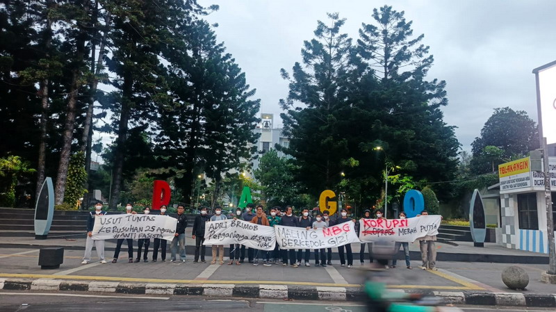 Bandung, Mahasiswa yang tergabung dalam Poros Mahasiswa Bandung Bergerak (PMBB) melakukan aksi unjuk rasa di Taman Dago Cikapayang Kota Bandung Jumat, 27 Februari 2026, mulai pukul 17.10 s.d 17.55 Wib.