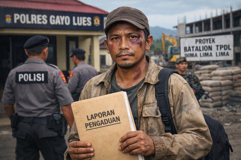 GAYO LUES |  Rencana pelaporan dugaan penganiayaan dan penguasaan barang tanpa hak di lingkungan proyek pembangunan Komplek Batalion TP 855, Gayo Lues, mulai mencuat ke permukaan. Syahadat Saufi, seorang petani yang menjadi korban dalam peristiwa tersebut, menyatakan akan segera melaporkan kasus yang dialaminya ke Polres Gayo Lues. Langkah ini diambil setelah ia merasa hak-haknya sebagai warga telah dilanggar dan tidak mendapatkan perlakuan adil di lokasi proyek.