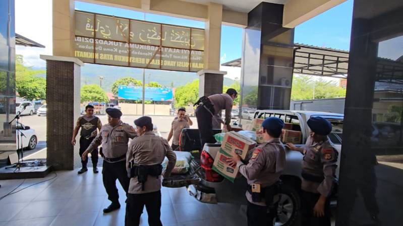 Kapolres Aceh Tenggara Pimpin Langsung Penyaluran Sembako dari Kapolda Aceh untuk Brimob Gayo Lues.
