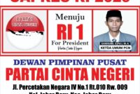 Jakarta — Pendiri sekaligus Ketua Umum Partai Cinta Negeri (Samsuri, S.Pd.I., M.A.) resmi dideklarasikan sebagai Calon Presiden Republik Indonesia untuk Pemilihan Presiden (Pilpres) 2029….