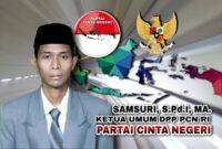 Jakarta | Sosok Pendiri sekaligus Ketua Umum Partai Cinta Negeri (Samsuri, S.Pd.I., M.A.) dideklarasikan sebagai Calon Presiden Republik Indonesia untuk Pemilihan Presiden (Pilpres) 2029…