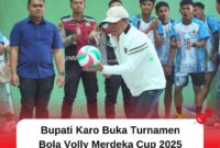 BERASTAGI KARO,Indonesia24News.net|Bupati Karo, Brigjen Pol (Purn) Dr. dr. Antonius Ginting, Sp.OG, M.Kes., secara resmi membuka Turnamen Bola Volly Putra Merdeka Cup 2025 Piala Bupati…